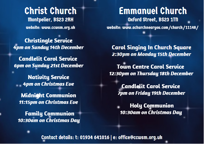 The next Evening Service will take place on Sunday 30th November at 6pm, marking the start of Advent. This will be our annual ‘Blue Christmas’ Service.